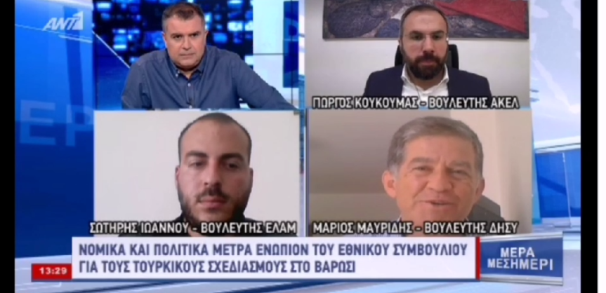 Ο Βουλευτής του ΕΛΑΜ Λάρνακας, Σωτήρης Ιωάννου, τοποθετήθηκε στην μεσημεριανή εκπομπή του ΑΝΤ1 αναφορικά με τις εξελίξεις στην Αμμόχωστο και τη θέση του Εθνικού Λαϊκού Μετώπου στο μείζον αυτό εθνικό ζήτημα για τον τόπο μας.